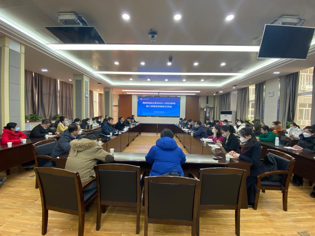 1月31日下午,学校在雁塔校区北院图书馆二楼会议室召开了本学期本科教学工作会。会议由副校长王贵荣主持。各学院(部)教学副院长(主任)、教务办主任,教务处、教学质量监督评估中心科级以上人员参加了会议。