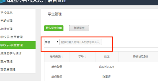 (高校管理员操作入径:高校管理后台-学校云-学生管理)