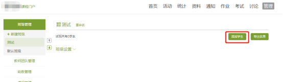 1)电脑登陆后进入课程,依次点击管理,创建班级,添加学生,学生库添加或批量导入。